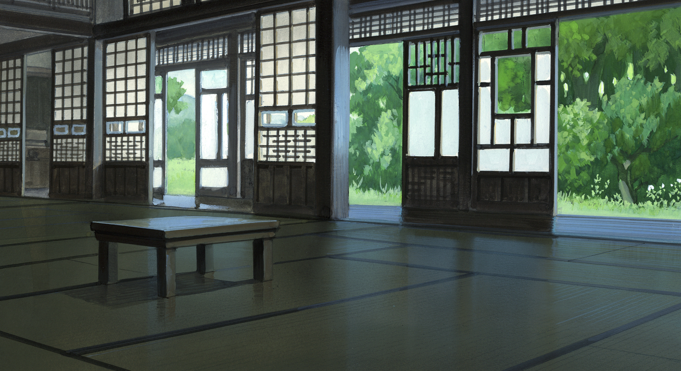 古民家を描くために、実際に監督の実家の近くである富山県の上市町までロケハンに行ったんです。ガラス戸の枚数や形は変わったけど、基本ロケハンした家とつくりはほとんど同じ感じです。