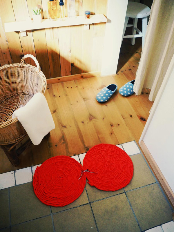 今回スプンクさんには「脱衣所で使う、お役立ちアイテム」をテーマに、「Tシャツヤーンのバスマット」を紹介してもらいました。ねじって・巻いて・くっつけるだけなので、編み物が苦手な人でも簡単に作れます!