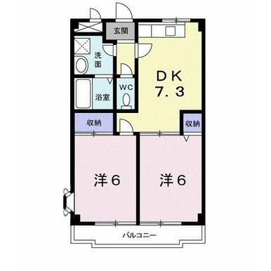 間取り | 2DK(洋6、洋6、DK7.3) | ||