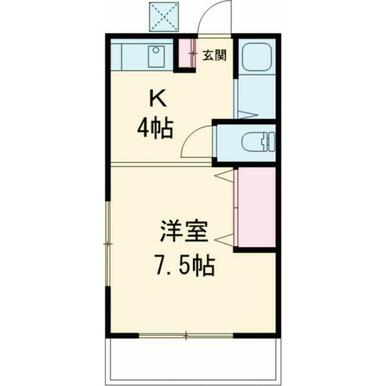 間取り | 1K(K4、洋7.5) | ||