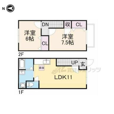 | 間取り | 2LDK(洋7.5×洋6×LDK11) | ||
