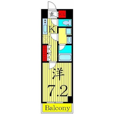 間取り | 1K(洋室7.2帖 K2.5帖) | ||