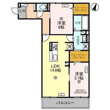 間取り | 2LDK(LDK14.5 洋5.7 6) | ||