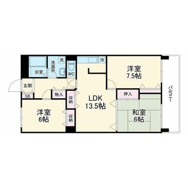 間取り | 3LDK(洋7.5、6、和6、LDK13.5) | ||