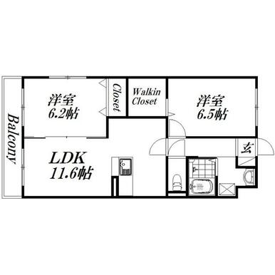 間取り | 2LDK(洋室6.5・洋室6.2・LDK11.6) | ||