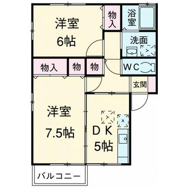 | 間取り | 2DK(洋6、7.5、DK5) | ||