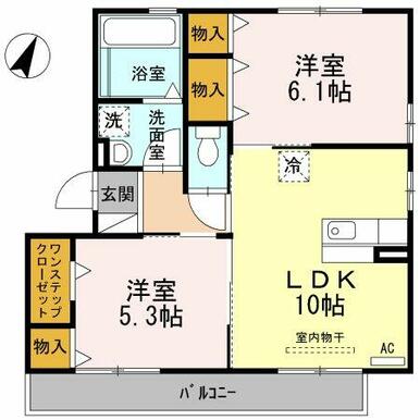 | 間取り | 2LDK(LDK10、洋6.1、洋5.3) | ||
