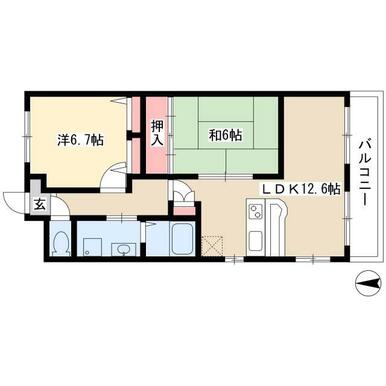 間取り | 2LDK(LDK12.6・和室6・洋室6.7) | ||