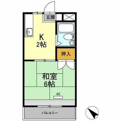 間取り | 1K(K2、和6) | ||