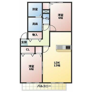 間取り | 2LDK(LDK13、洋6、洋6) | ||