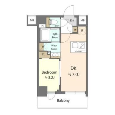 間取り | 1DK | 面積 | 25.43m² |