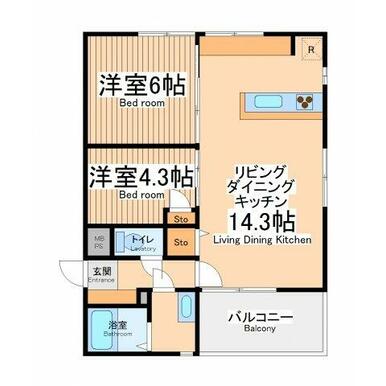| 間取り | 1SLDK(洋6、S4.3、LDK14.3) | ||