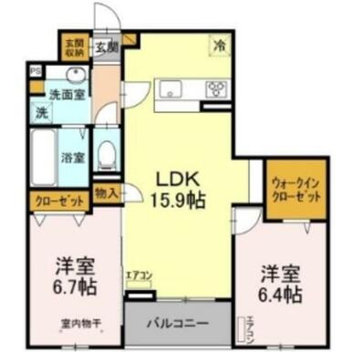 間取り | 2LDK(LDK15.9洋室6.7洋室6.4) | ||
