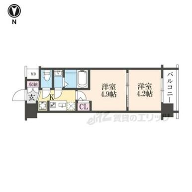 | 間取り | 2K(洋4.9×洋4.2×K2) | ||