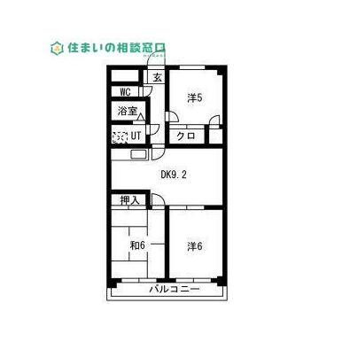 | 間取り | 3DK(DK9.2・洋室5・洋室6・和室6) | ||