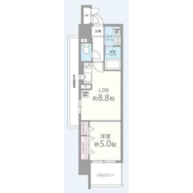 | 間取り | 1LDK(LDK8.8・洋室5) | ||