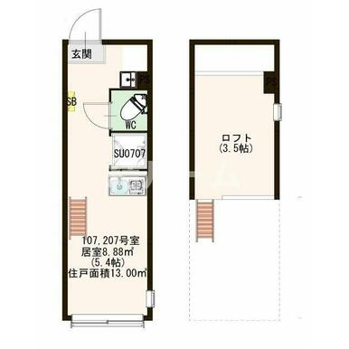 物件種目 | 賃貸アパート | 専有面積 | 13.00m² |