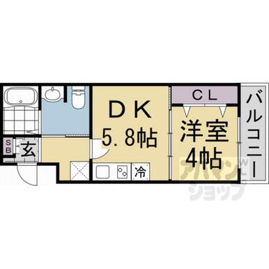 間取り | 1DK(洋4×DK5.8) | ||