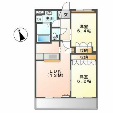 間取り | 2LDK(LDK13、洋6.4、洋6.2) | ||