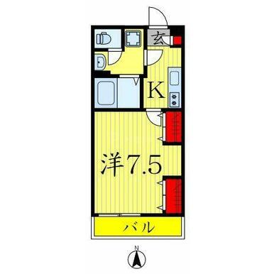 間取り | 1K(洋室7.5帖 K3.0帖) | ||