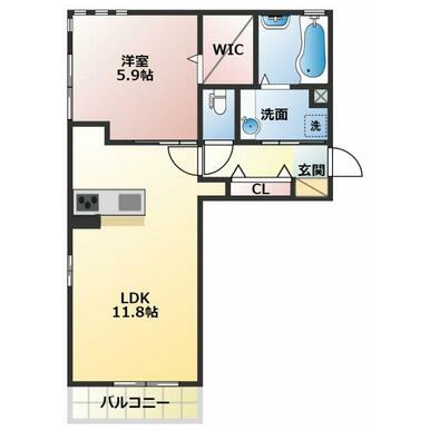 間取り | 1LDK(LDK11.8、洋5.9) | ||