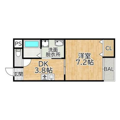 間取り | 1K(洋 7.2 K 3.8) | ||