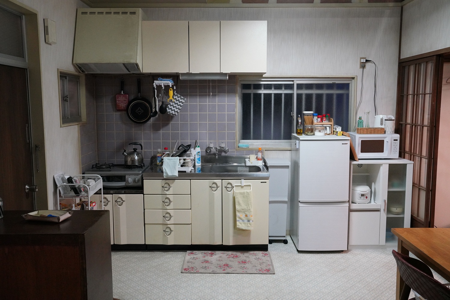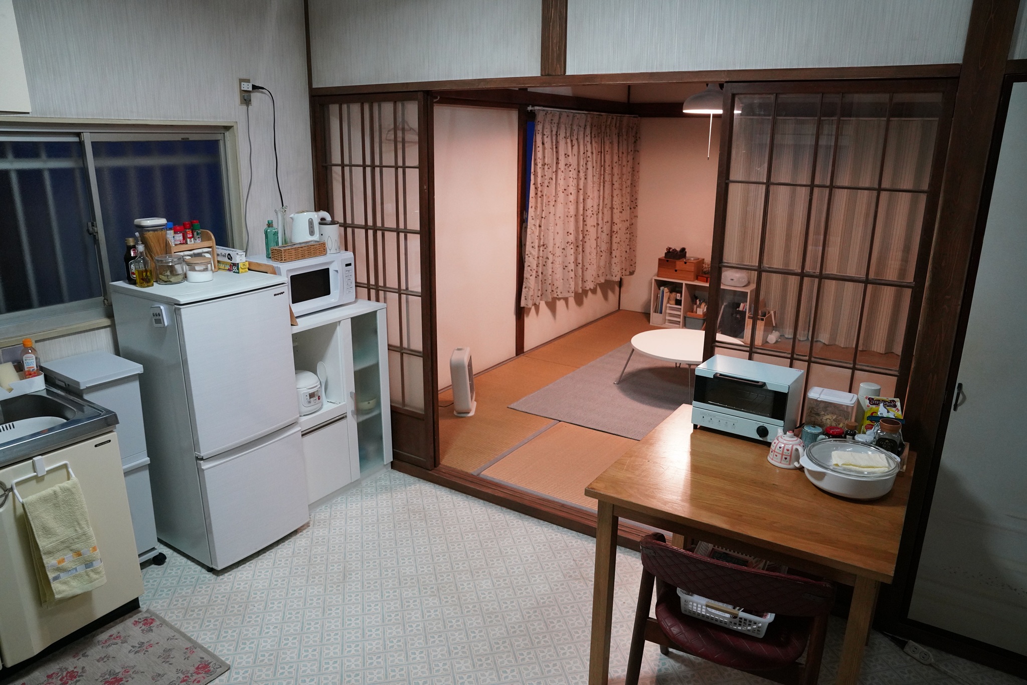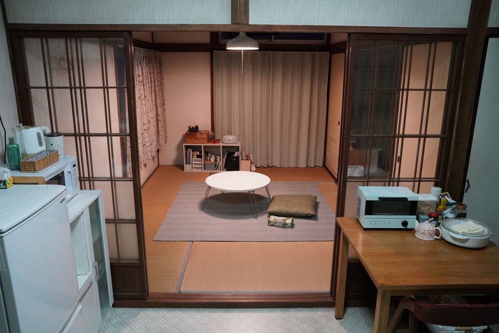 「外観で使用した物件の窓には特殊な柄が入っていたんです。セットをつくる際、そのガラスを見つけるのが大変でした。結局見つからなくて、新たに柄のあるガラス窓をふたつつくって、ロケ地のアパートとセットにそれぞれはめ替えました。窓ガラスが多少違っていたところで『違うじゃないか』と感じる観客はほぼいないし、画面にディテールは写っていないと思うんです。でも、役者さんたちは両方でお芝居をされる。違和感なく演技できる空間をつくることは大事ですね」