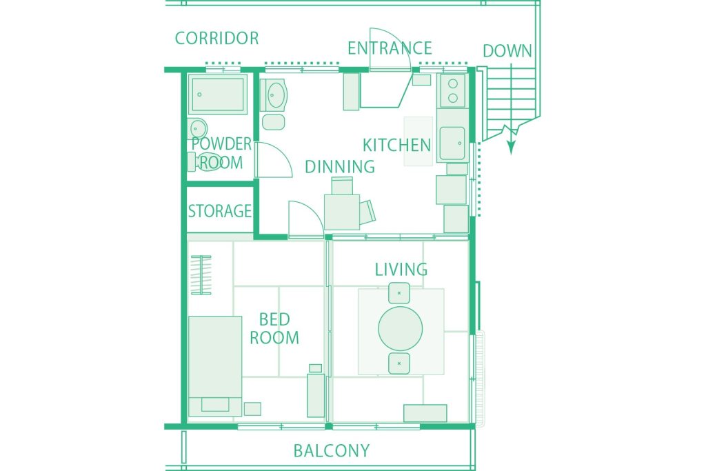 「玄関がここで、窓がここにあるから、ベランダは向こう側にあるかなという風に、外観から逆算してつくっていきました」