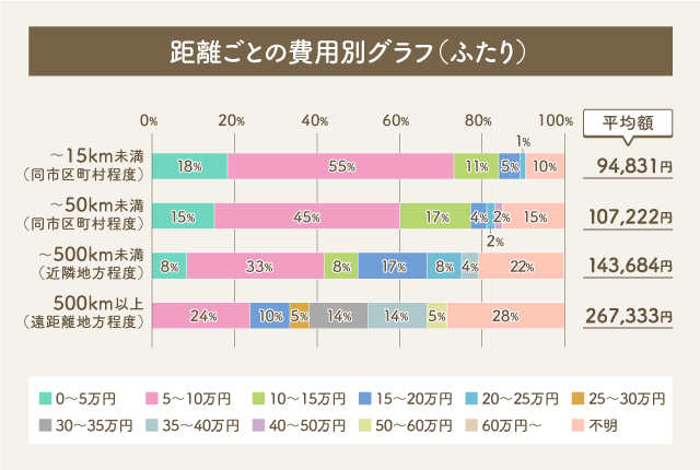 実際に二人暮らしでどれくらい引越し費用がかかったのか、アンケート調査をおこなった結果以下となりました。