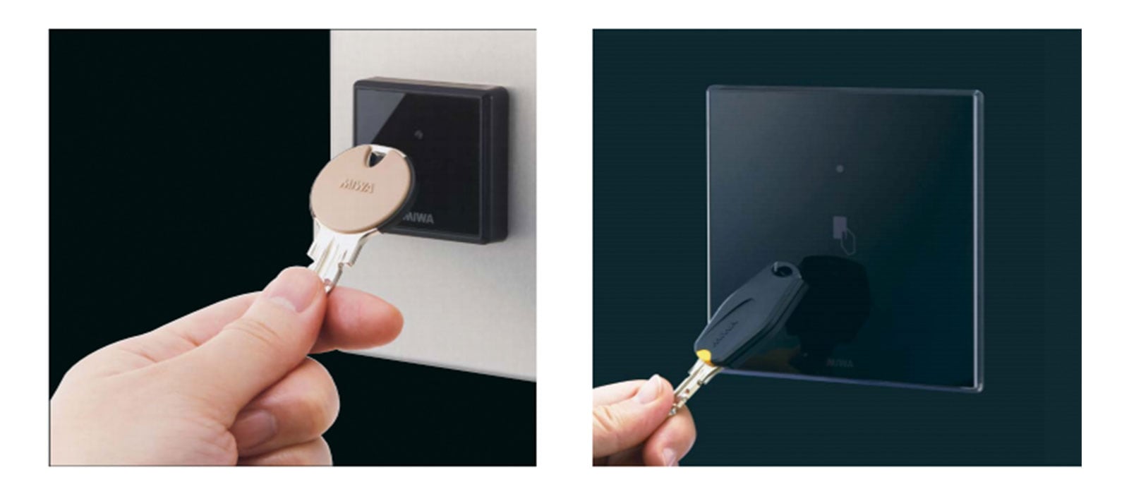 ハンズフリーキー(非接触キー)は、専用のICチップ付のキーやタグなどをリーダー近づける(感知させる)だけで、鍵をポケットやカバンに入れたまま開錠できるキーシステムのことです。