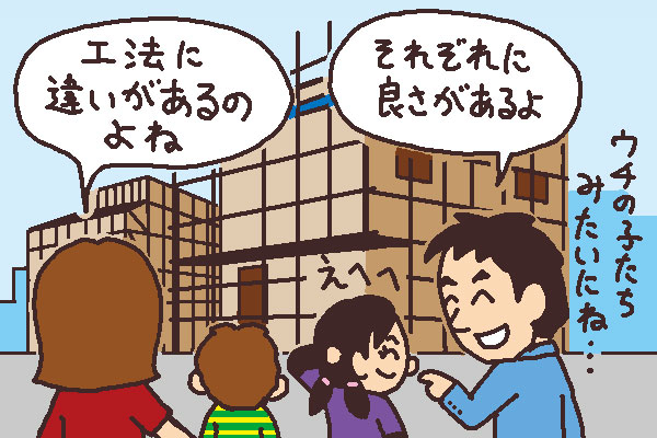 パンフレットでは、これらの工法や構造などが図解や写真などでわかりやすく説明されていますから、細かい部分を比較することができます。