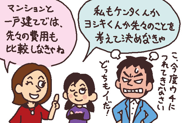 まず、今の自分のライフスタイルや家族のニーズを踏まえて、それに合う方を選ぶことになりますが、さらに進んで、将来的なことを考えてみることをおすすめします。例えば、先々子供の進学によっては、駅まで遠いと通学が大変になってしまいますし、家族数が増減した場合にどうするかも考えておく必要がありそうです。
