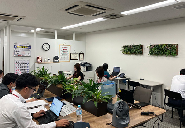 アクセス良好な「大宮」駅を最寄りとした営業所です。主に大宮区より北部の埼玉県エリアを担当しており、20代を中心に世代もバランスの取れたフリーアドレスの営業所です。