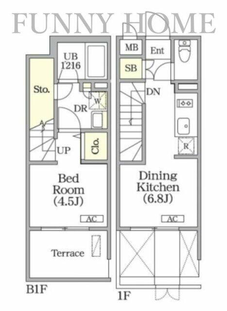 - メゾネット地下1階~1階部分