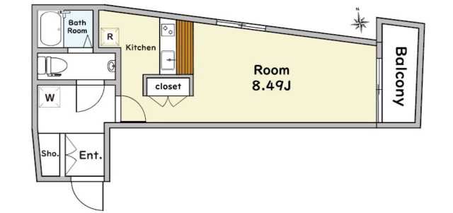 ワンルーム25.43m²