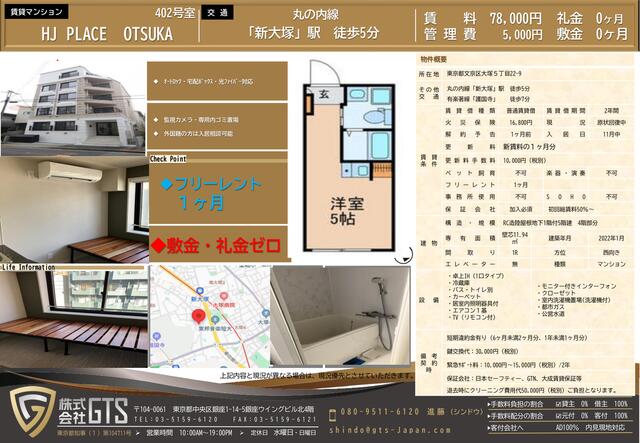 - 東京メトロ丸ノ内線 「新大塚」駅 徒歩5分