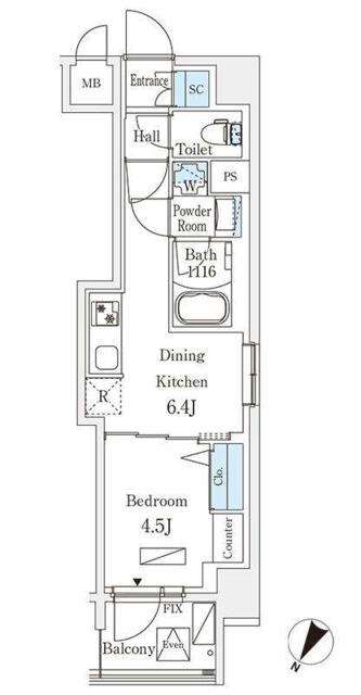 ワンルーム22.54m²