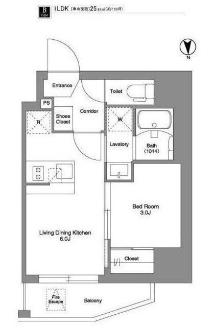 ワンルーム25.09m²
