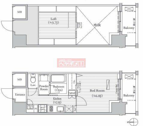 - メゾネット地下1階~1階部分