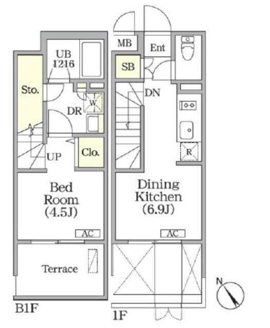 - メゾネット地下1階~1階部分