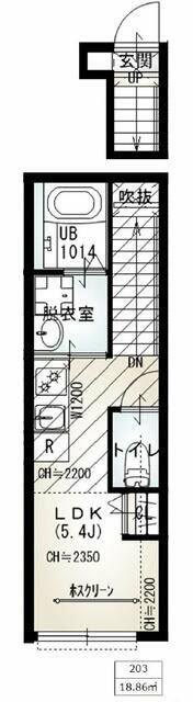 ワンルーム18.86m²