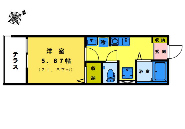 ワンルーム21.72m²