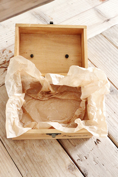 3.ワックスペーパーを敷き、ココナッツファイバー、インテリアバークを乗せる