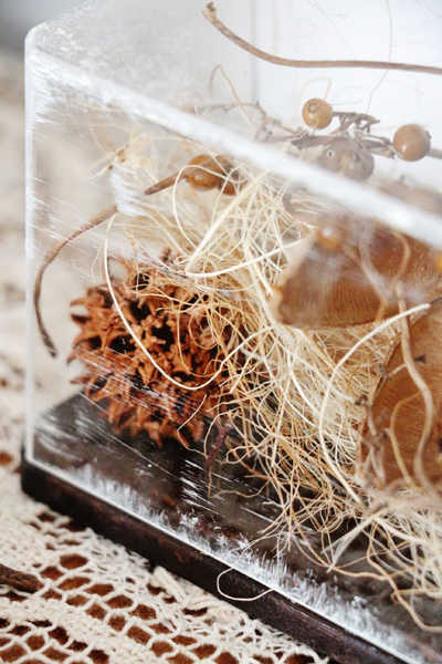 2.コレクションケースミニワイドのケース部分に木の実・ドライフラワー・ココヤシファイバーを入れる